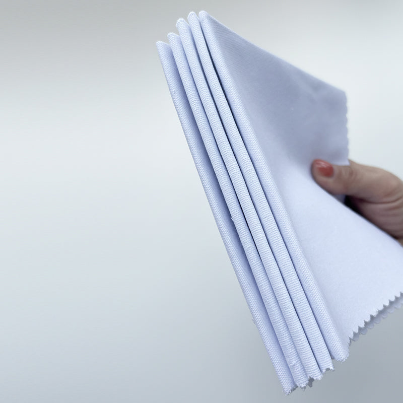 I've tested dozens of types of material so that you don't have to! This 100% Cotton Fabric material has a fine weave that is perfect for embroidery and a nice white finish that will provide a great contrast against your threads to really make them 'pop'.